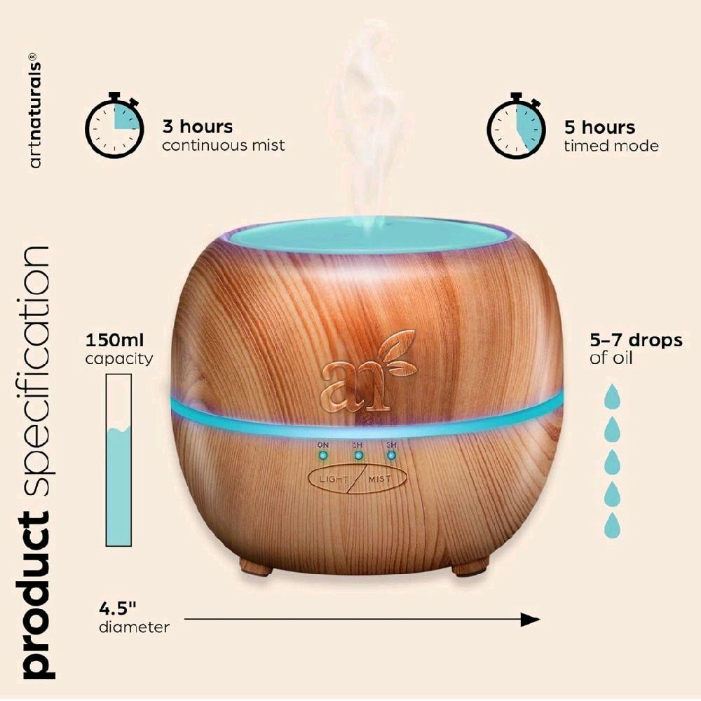 capacity, ideal for diffusing essential oils and adding moisture. Its sleek