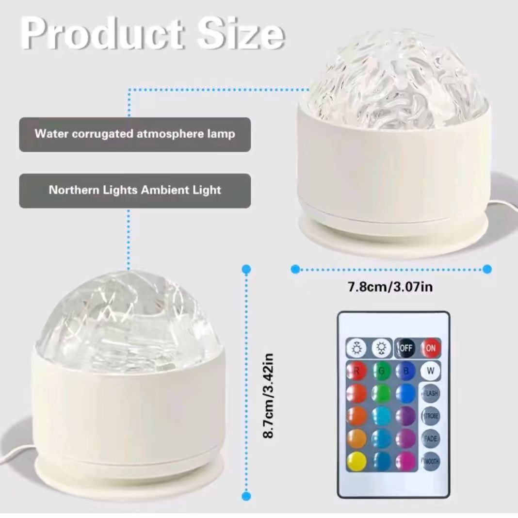 The Aurora/Water Ripple Light is not only a great addition to any room decor, but it also has a unique and mesmerizing design that can enhance the ambiance of any space. Whether you're looking to create a relaxing atmosphere or add a touch of elegance to your home, this lamp is the perfect choice. So why wait? Get your Aurora/Water Ripple Light today and start enjoying the beauty and convenience of this amazing product!