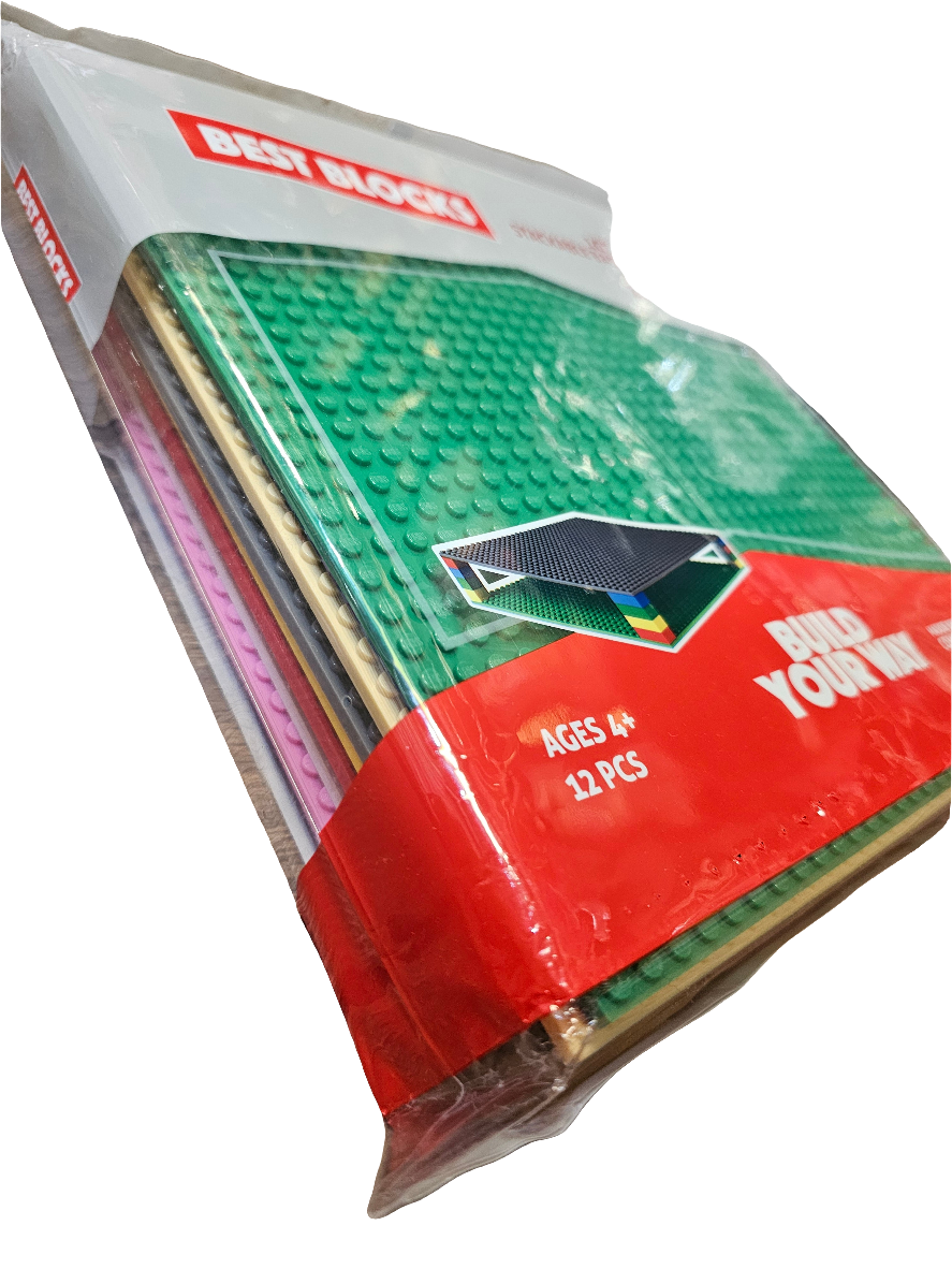 Contents: A 12-piece set of 10" x 10" stackable baseplates in 12 different colors.