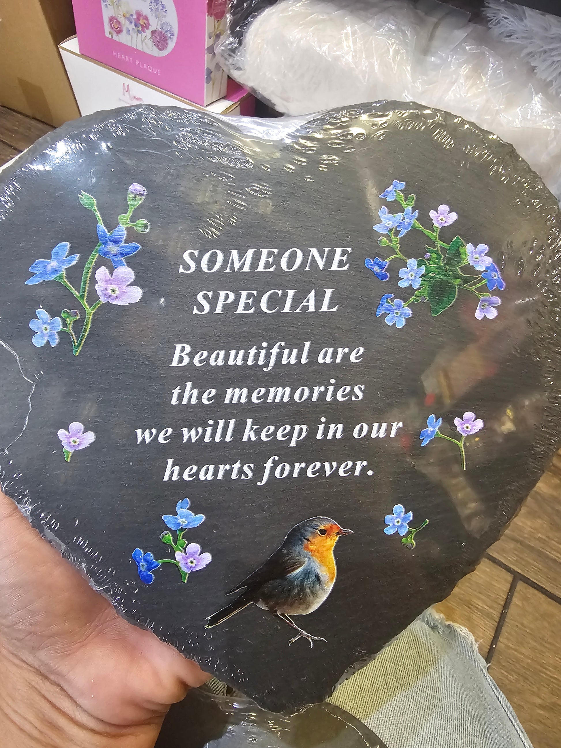 This Black Slate Memorial Heart with Robin Design is a beautiful and timeless way to honor and remember a loved one. Made with high-quality black slate, this heart-shaped memorial features a delicate robin design that adds a touch of nature and nostalgia. Perfect for both indoor and outdoor display.