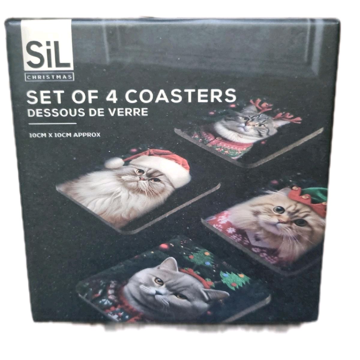 Christmas Cat/Dog Coaster Set of 4 - Kitchen Tableware Accessories