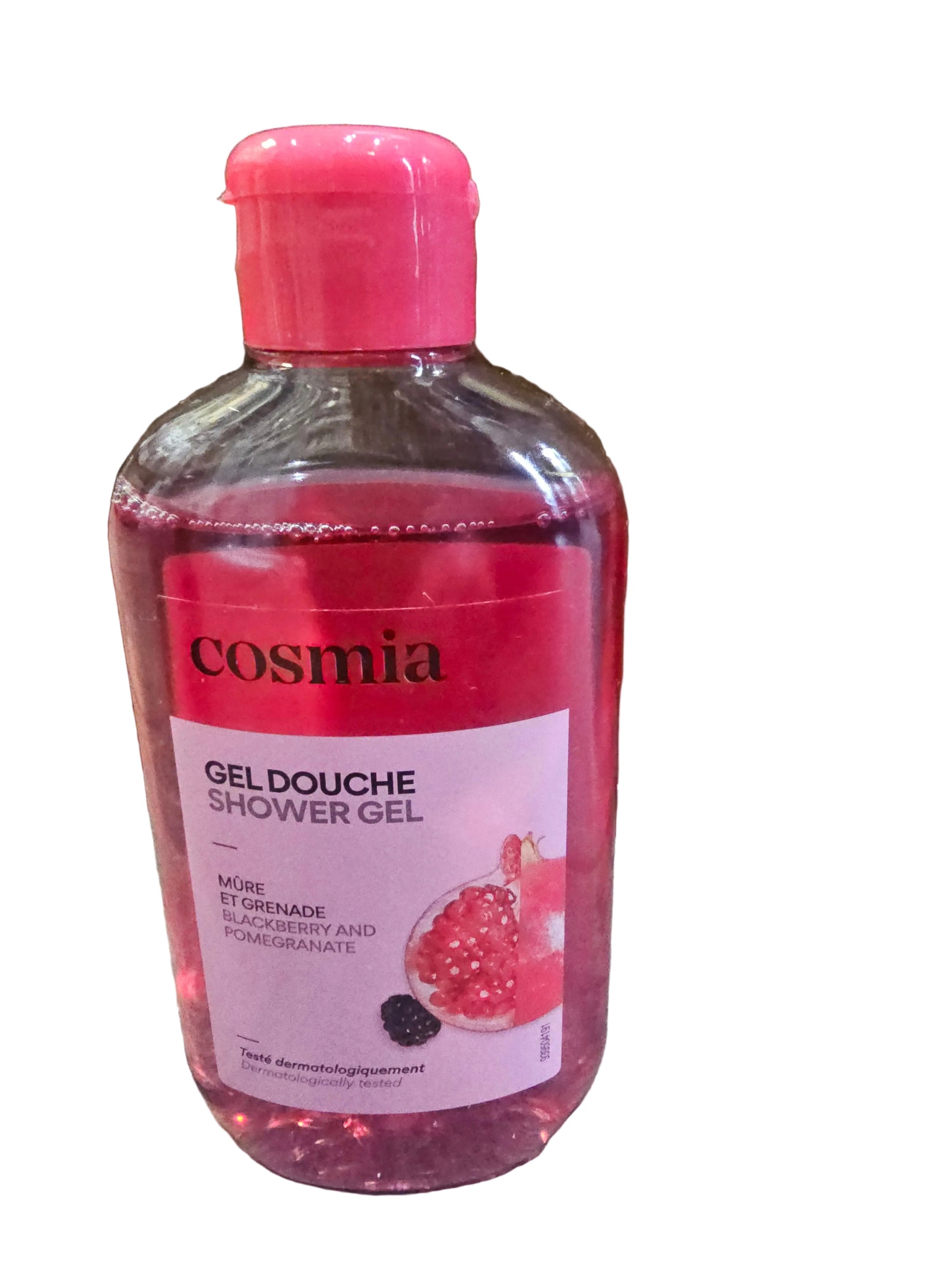 Cosmia's shower gel and milk collection, typically available in 250 ml bottles: