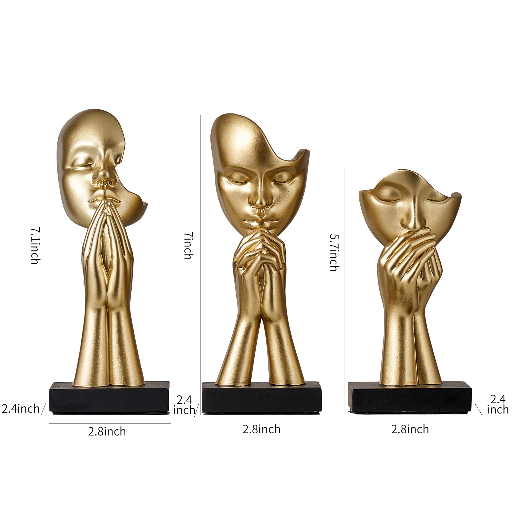 Gold Resin Prayer Statues Set of 3 - Modern Home Décor Ornaments