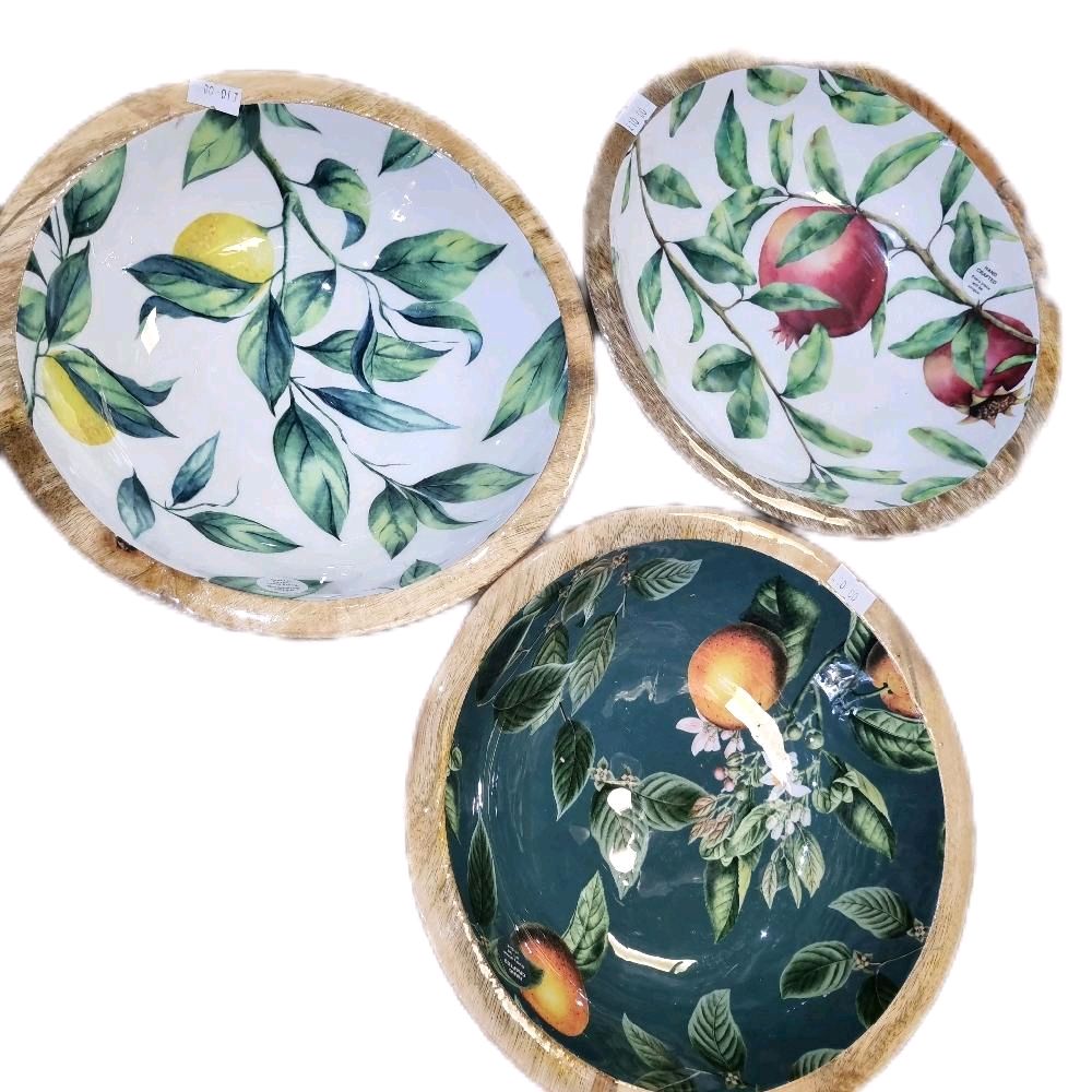 handmade natural Mango Wood Enamelled Bowls 24cm 3 Designs Tableware Handcrafted Decorative BPA Free Natural Variation Elegant Design - Wooden