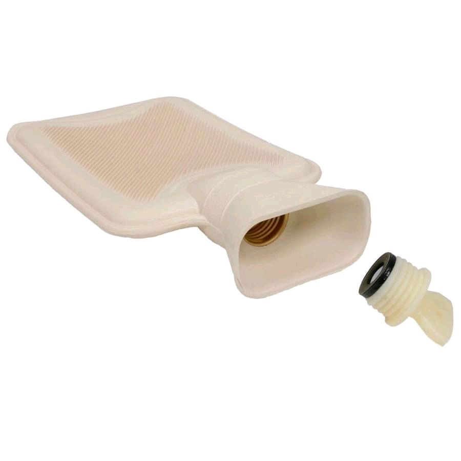 The mini hot water bottle inside is approximately 25cm x 15cm and is made from natural rubber, conforming to British Standard 1970:2012.