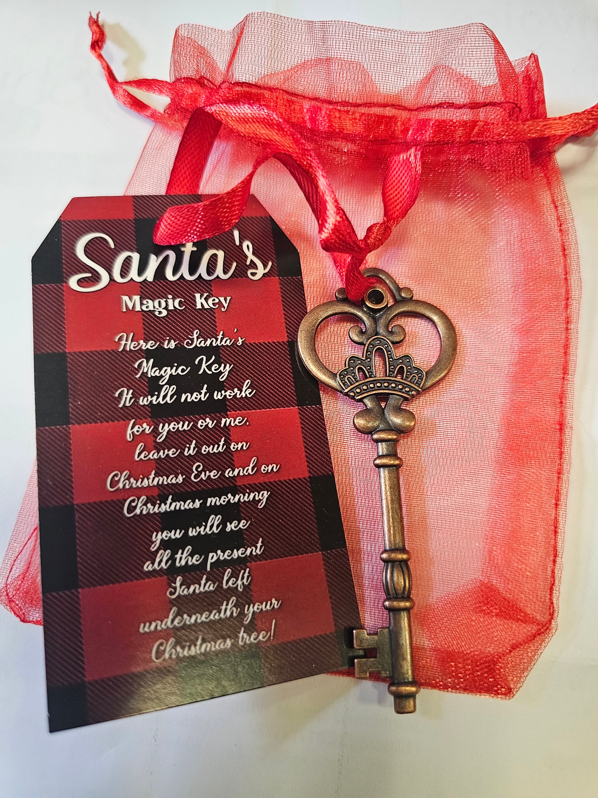 Elevate your Christmas Eve traditions with Santa's Magic Key. This essential tool, perfect for homes without a chimney, guarantees a visit from Santa and works like magic. No more worries about Santa's entrance - just hang this key outside and let the magic unfold.