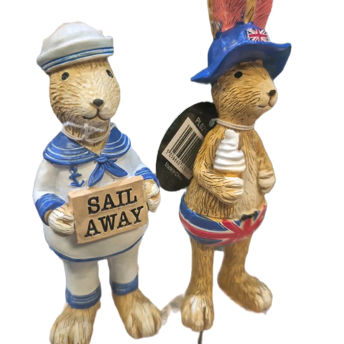The ornament is made of durable materials, ensuring that it will last for years to come. The small size of the ornament makes it easy to move around and display in different locations, allowing for versatility in decorating. Whether you're looking to add a touch of whimsy to your home or looking for a unique gift for someone special, this small standing hare ornament is sure to delight.