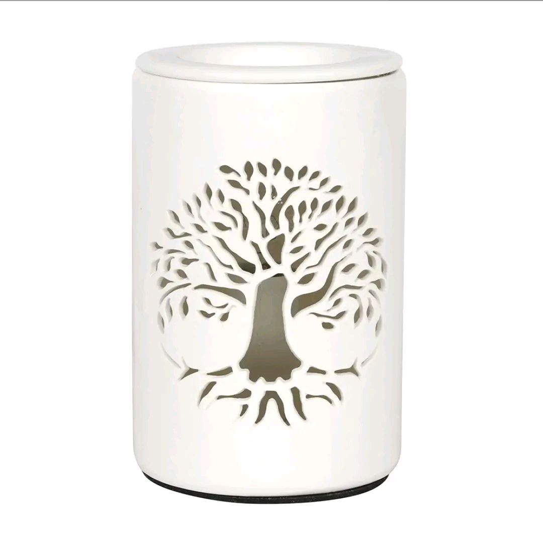 This elegant electric burner lights up to showcase a stunning tree of life design. Place on a level and heat resistant surface before adding wax or oil to the ceramic dish.