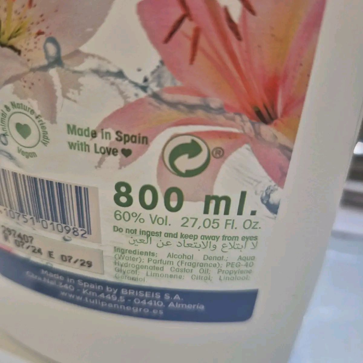 With a volume of 800ml, the Tulipan eau de colonia original is a great value for those who want a larger quantity of the product. This means that you can enjoy the benefits of this fragrance for a longer period of time, without having to worry about running out too quickly.
